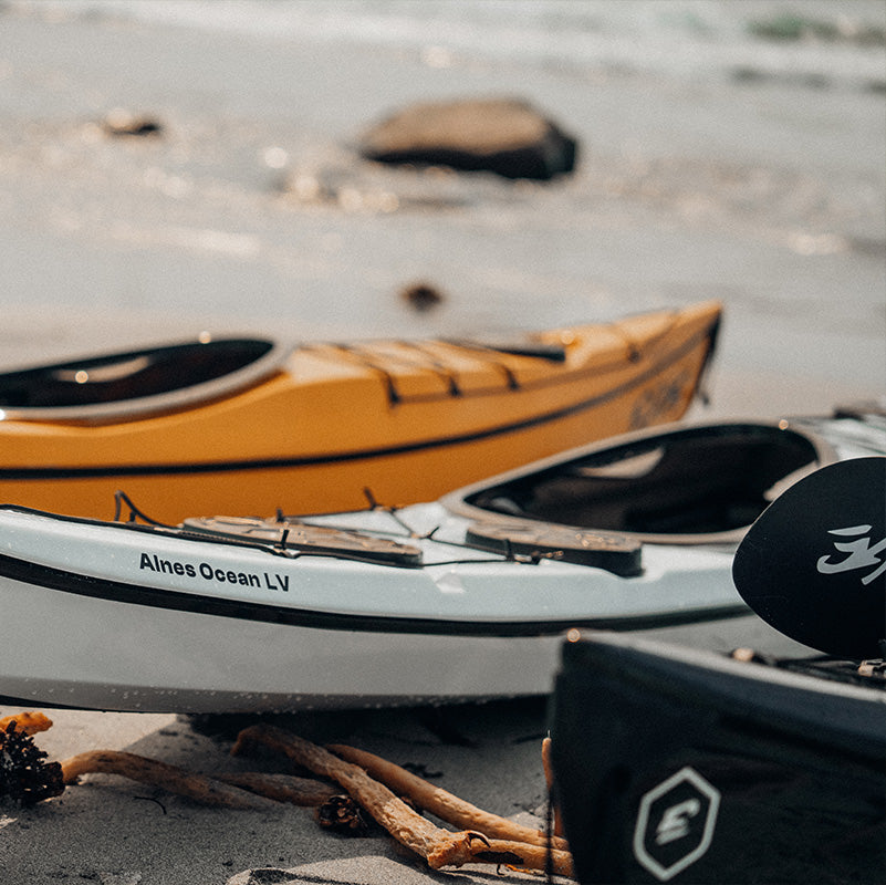 Alnes Ocean is made for surf and paddling. Its sharp lines are inspired by the traditional Greenland kayak with a hard chine, which gives the kayak its unique design that invites limitless use in surf and paddling.